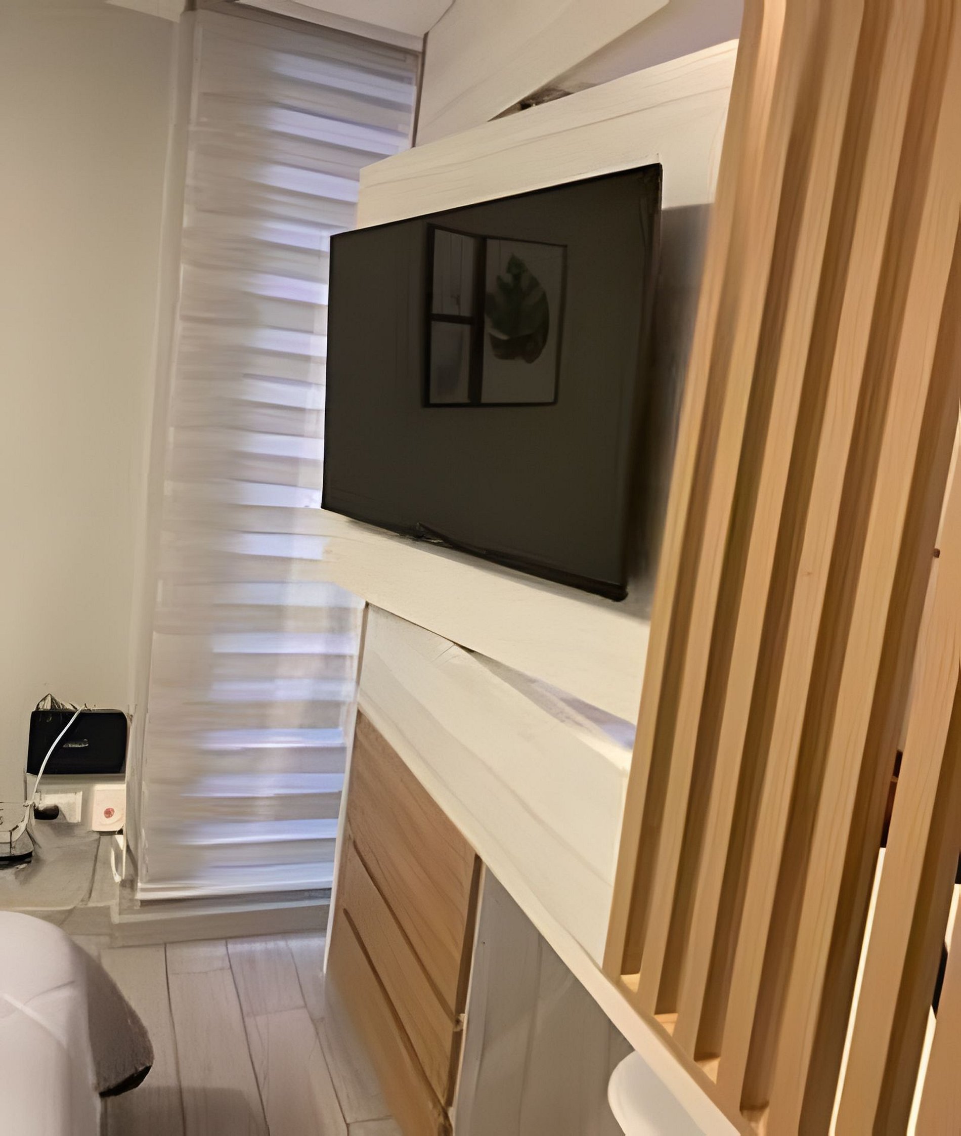Toma de corriente eléctrica cerca de la cama